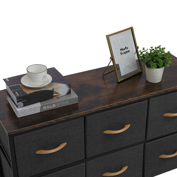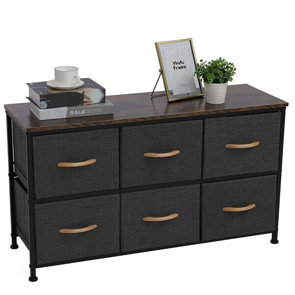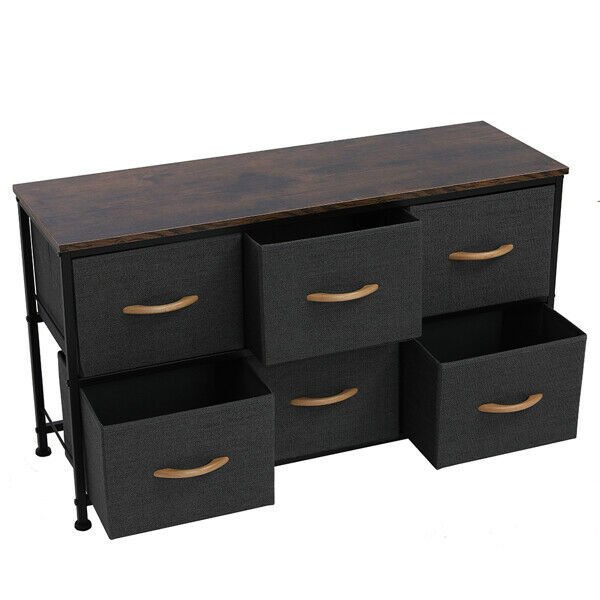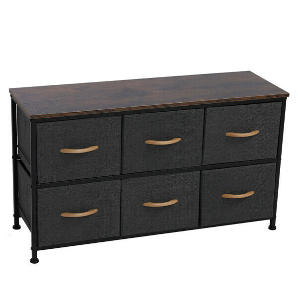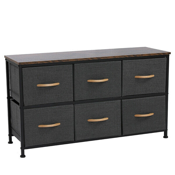 3-Tier Wide Drawer Dresser, Storage Unit with 6 Fabric Drawers and Metal Frame