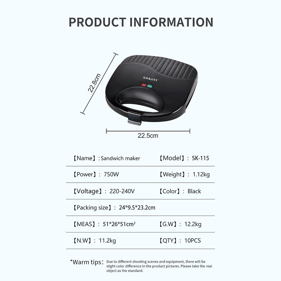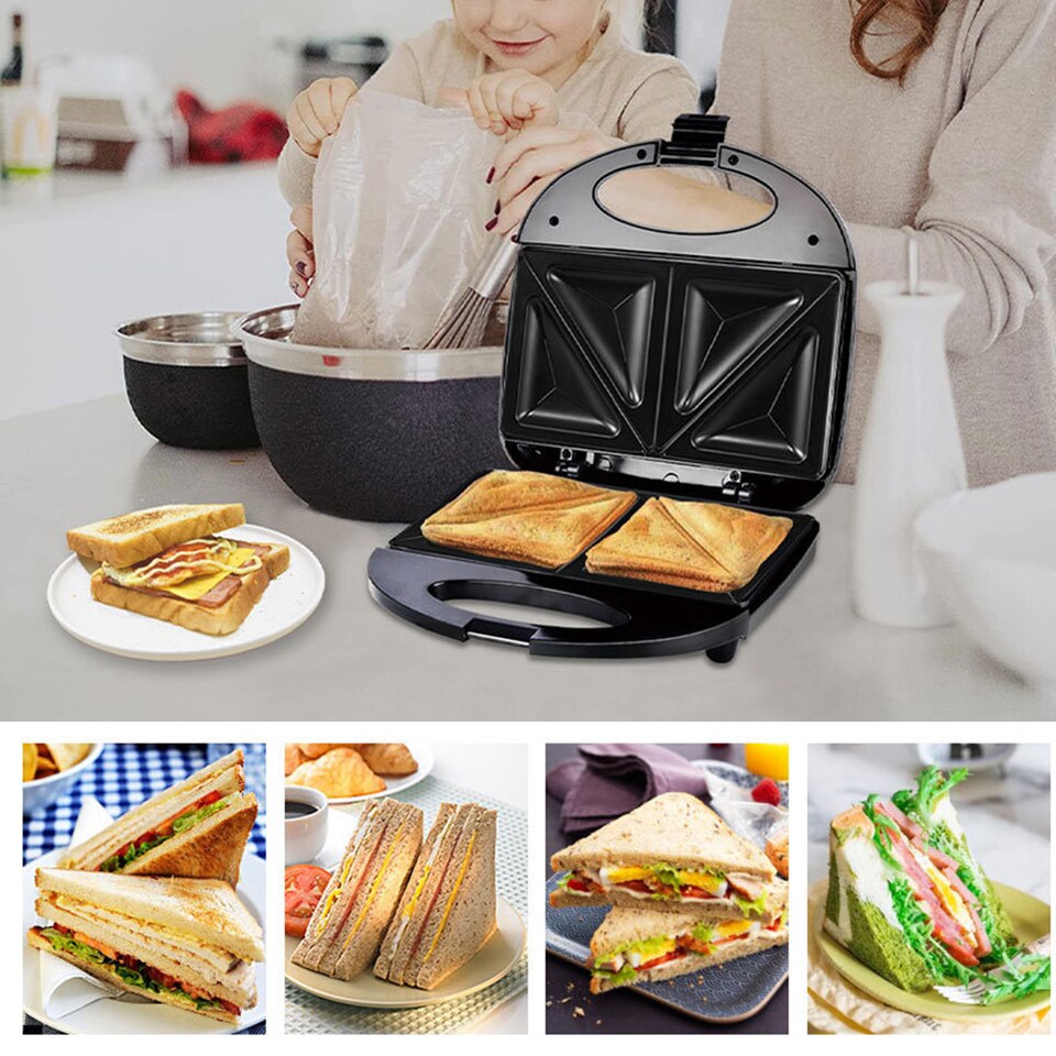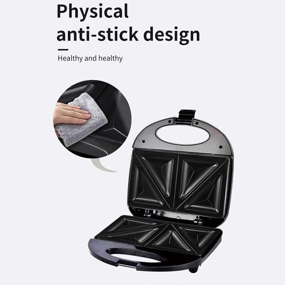 Feature: 1. Safe: due to the use of heat-resistant handle and anti-slip foot, the design ensures maximum safety. 2. Non-stick: high-quality non-stick coating plate ensures fast and easy cleaning after use. In addition, you can store this sandwich grill combination device horizontally and vertically, so you can always store your items in a space-saving way. 3. Multi-functional: You can use the sandwich machine to make delicious sandwiches, delicious toast and cheese sandwiches. 4. Easy to clean: very suitable for enjoying the perfect sandwich. Very easy to use sandwich toaster. The non-stick coating ensures easy cleaning. 5. Applicable occasions: suitable for family use, kitchen gadgets, making different kinds of sandwiches for children, and can also be used in dessert shops, bakeries and other places.