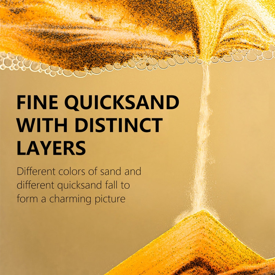 PRODUCT ADVANTAGES】: Products carefully screened sand, colorful, levels clearly demarcated, flow out of the pattern of 3D effect is excellent. The Living Room Decoration has ever-changing picture, rich in content. Can relieve stress and eye fatigue. It is soothing and interesting to watch them evolve with a new creation with every turn.
