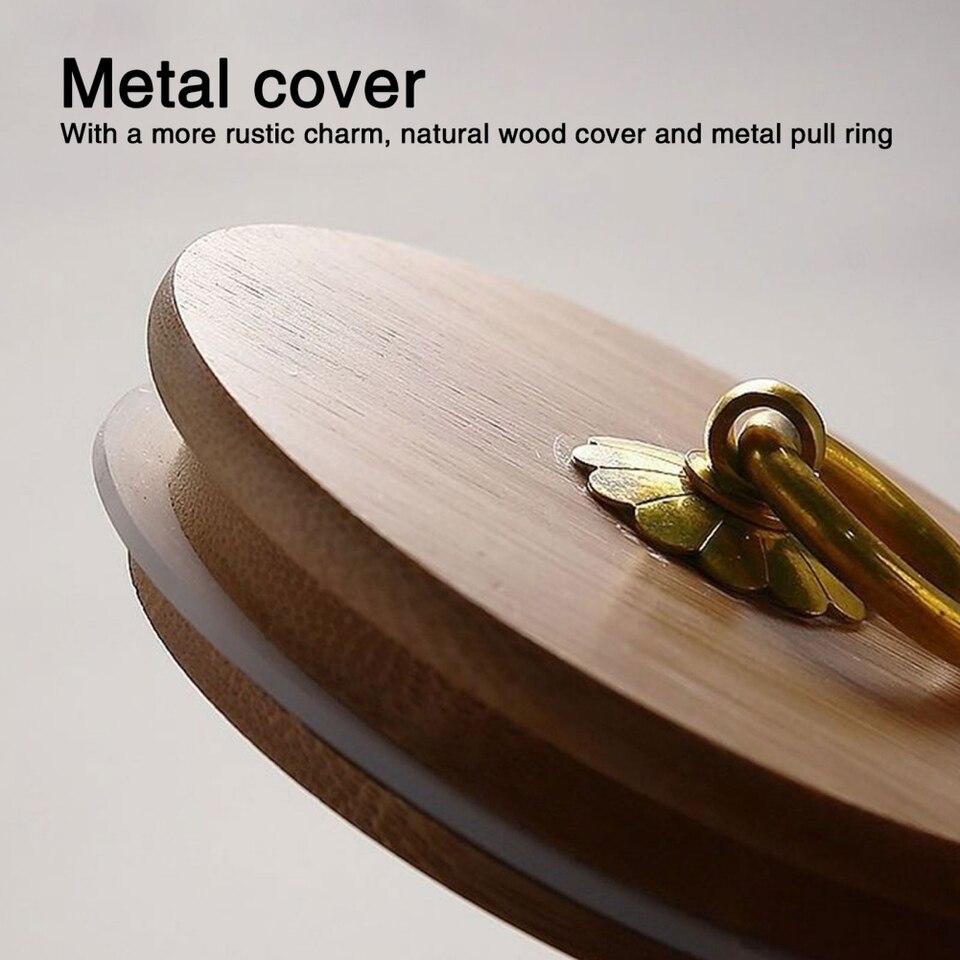 Natural bamboo and wood cover and metal pull ring, built-in rubber ring, moisture-proof and leak-proof.