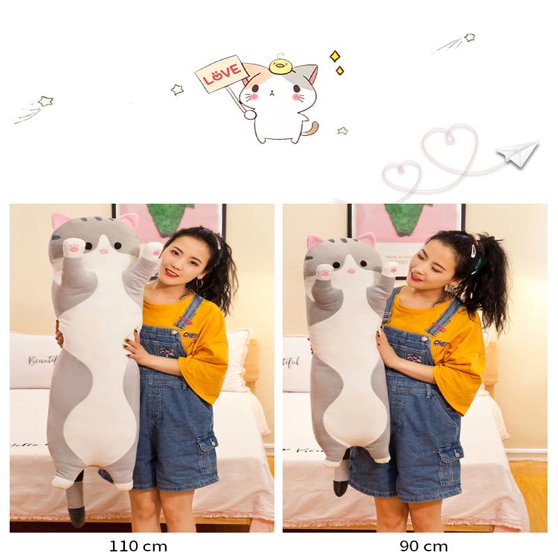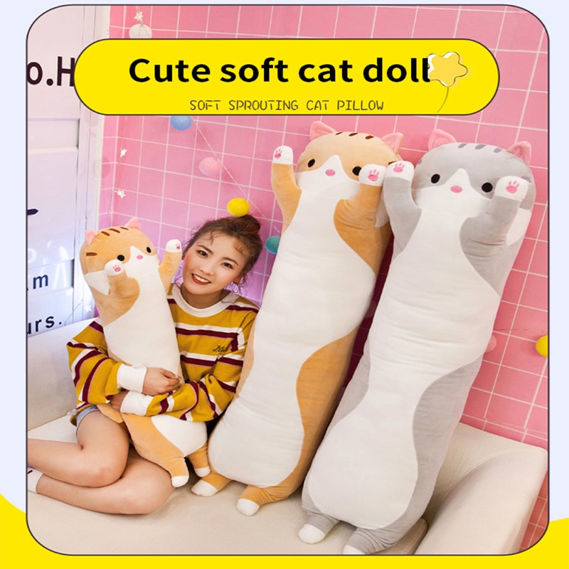 Lovely Plush Cat Doll Cute Cartoon Soft Stuffed Kitten Pillow Long Throw Sleeping Pillow Doll Toy Gift For Kids Girlfriend