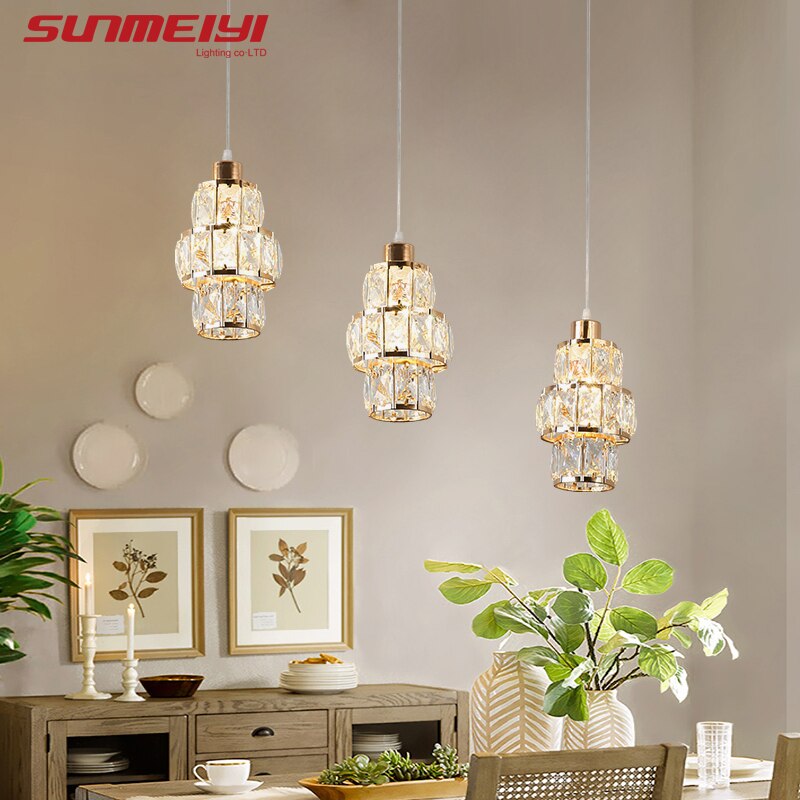 Nordic LED Pendant Lights Crystal Gold Hanging Lamp For Dining Table Bar Kitchen Living room lampada industrial Modern Light