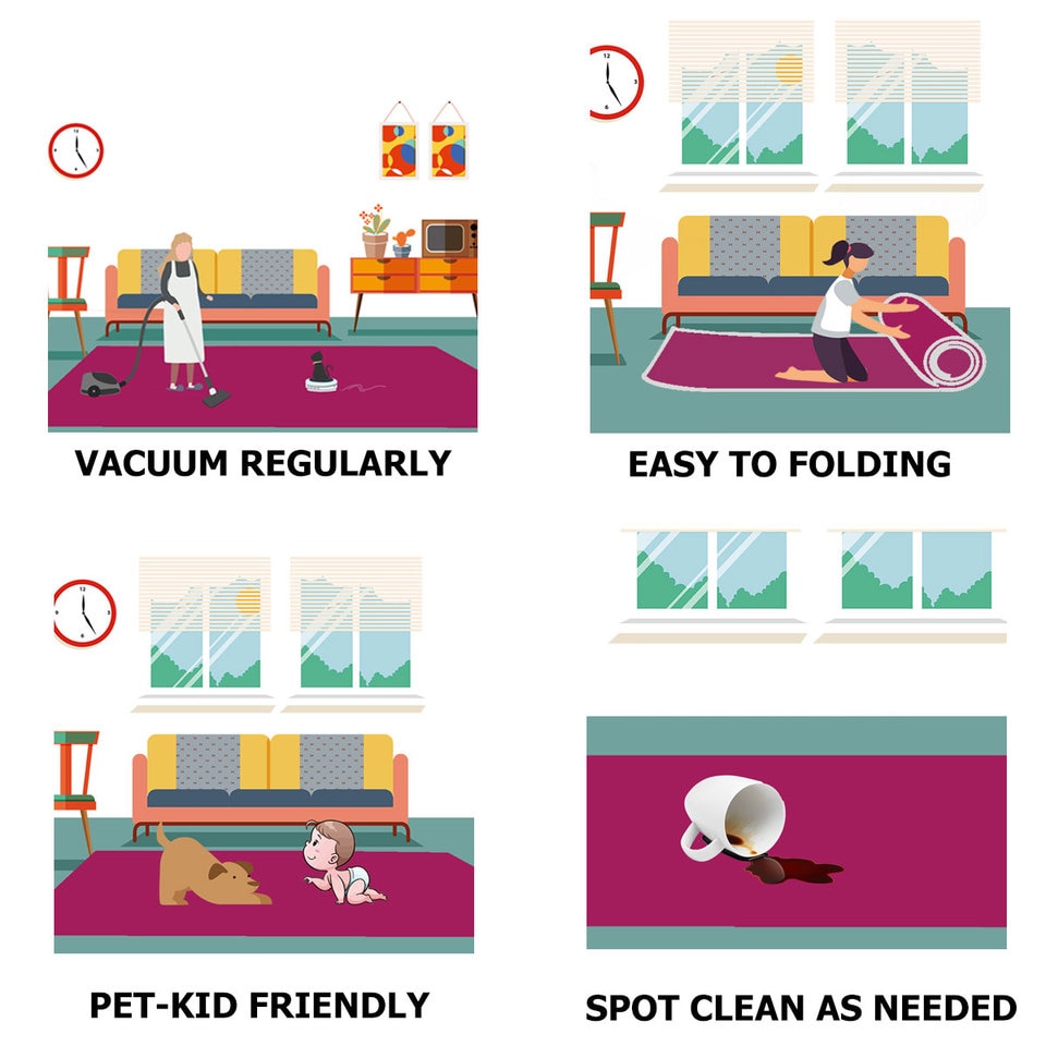 【EASY TO CARE FOR】Vacuum regularly to prevent grit from breaking down the fibers. Always raise or turn off the beater bars on your vacuum; use a broom to sweep fringed edges clean. Spot clean stains with a mild detergent or carpet cleaning product, we recommend vacuuming regularly and spot cleaning with a clean cloth. Professional rug cleaning is recommended.